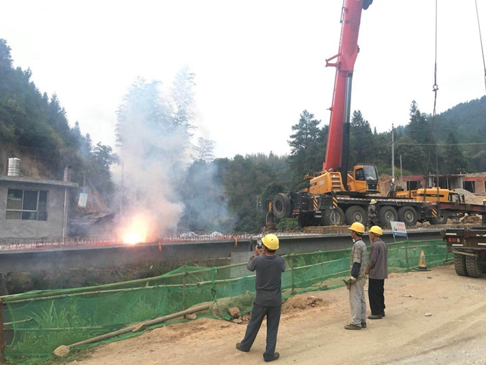 9月13日下午4點(diǎn)左右,隨著船坑中橋最后一片梁的架設(shè),公司炎陵S207項(xiàng)目橋梁工程圓滿收官。