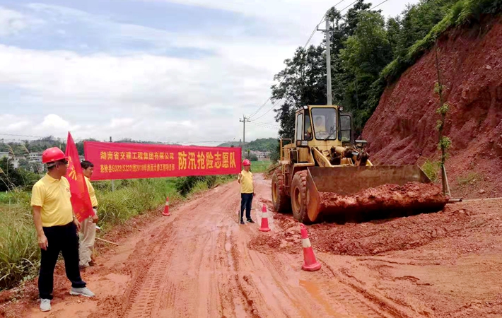 攸縣S333線網(wǎng)朱公路攸縣段大面積塌方現(xiàn)場項目部不畏艱險自覺組織20多人,投入推土機(jī)1臺,平地機(jī)1臺,挖機(jī)2臺,鏟車2臺,小金剛自卸汽車4輛,及時進(jìn)行險情排除,保證了道路的順暢。攸縣中江至幽居村道被山洪沖毀及山洪造成山體滑坡現(xiàn)場,應(yīng)急搶險隊9人,指揮調(diào)度推土機(jī)、挖掘機(jī)等設(shè)備2臺,進(jìn)行防護(hù)搶險。攸縣S333線網(wǎng)朱公路攸縣段邊坡塌方現(xiàn)場團(tuán)隊12人,投入鏟車2臺,挖機(jī)1臺,保證附近居民的出行安全,及搶險物資運(yùn)送通道順暢。
