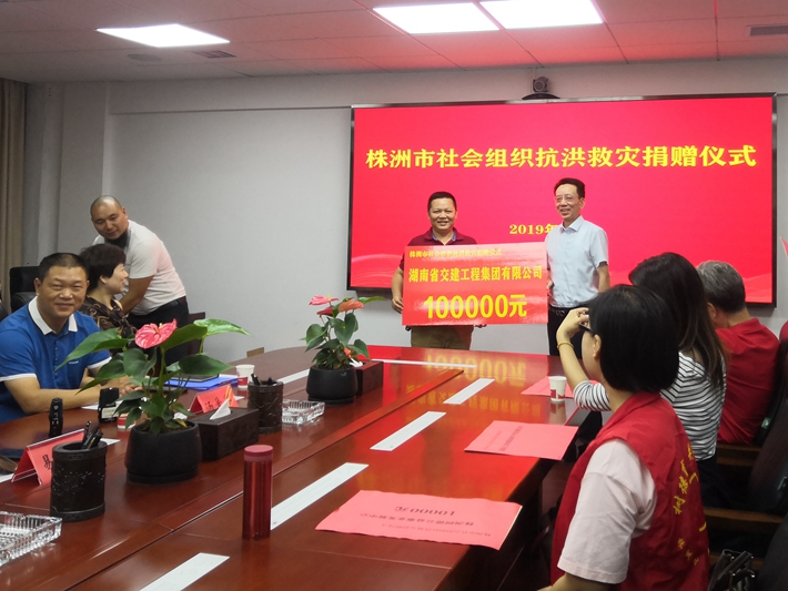 7月12日,董事長謝志方應(yīng)邀出席株洲市民政局組織的株洲市社會組織抗洪救災(zāi)捐贈活動,并捐贈壹拾萬元款項用于抗洪搶險和災(zāi)后恢復(fù)工作。公司此舉得到民政局領(lǐng)導(dǎo)的高度贊許,湖南省交建工程集團(tuán)有限公司是不忘初心,具有高度社會責(zé)任感的企業(yè)。