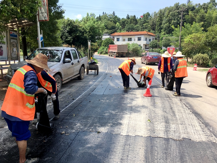 烈日當空,驕陽似火。株洲市茶馬線(X002)荷塘段提質(zhì)改造工程項目進行了為期五天的瀝青路面攤鋪施工任務。走進施工現(xiàn)場是一片忙碌的景象,攤鋪機、安全員、巡視員、打磨工、清潔工各司其職,兢兢業(yè)業(yè),頂著烈日為瀝青攤鋪的順利進行而緊張地忙碌著。
