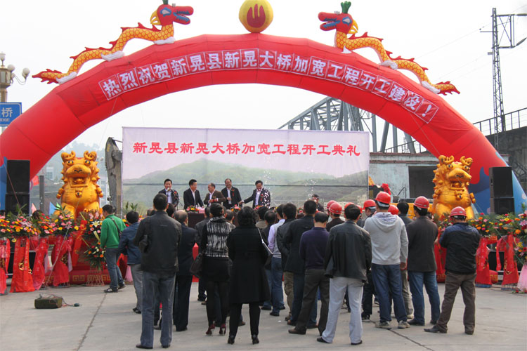 10月30日上午九點十八分,新晃縣新晃大橋加寬工程開工儀式典禮在熱鬧、祥和的氛圍中隆重開幕。新晃大橋作為西通貴州的必經(jīng)之橋,也是連接縣城兩岸城區(qū)的重要橋梁,承載了厚重的歷史任務(wù),隨著社會經(jīng)濟(jì)的發(fā)展,人流、車流激增,雙向兩車道的新晃大橋不能滿足日益增長的通行負(fù)荷,大橋加寬日益緊迫。為此,新晃縣委、縣政府把新晃大橋加寬工程列為2012年度重點工程,該工程總投資1098萬元,橋梁跨度179.18米,加寬10.05米,預(yù)計2013年8月底建成通車。作為新晃縣的形象工程、民生工程,縣委、縣政府等領(lǐng)導(dǎo)對該工程十分重視,縣領(lǐng)導(dǎo)梁永泉、陸志前、楊長河、田連釗、尹少中、鄧鐵牛等重要領(lǐng)導(dǎo)悉數(shù)出席開工儀式典禮現(xiàn)場。我公司董事長謝志方同志作為施工方代表出席并講話了。謝總承諾:“我們將重守合同、尊重業(yè)主、服從監(jiān)理、融洽群眾,將新晃大橋加寬工程建設(shè)成為一個精品工程,為新晃縣的基礎(chǔ)設(shè)施建設(shè)作貢獻(xiàn)。同時我們也想以此為契機(jī),扎根于侗鄉(xiāng)這片熱土,廣交朋友,勇創(chuàng)佳績。