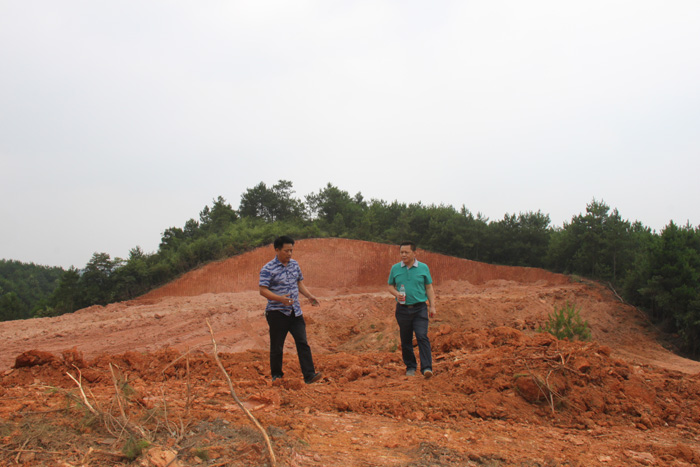 公司董事長謝志方及副總經(jīng)理郭建文視察剛破土動(dòng)工的“三合一”場(chǎng)站建設(shè)