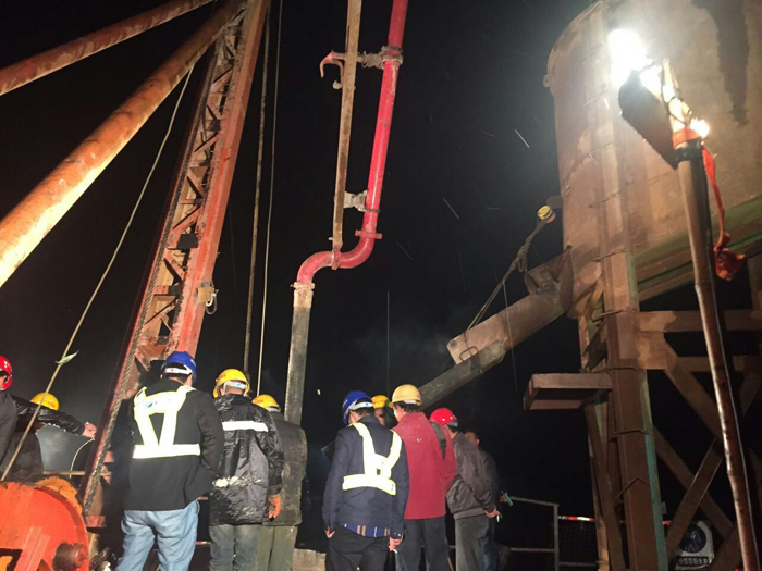 項(xiàng)目指揮長、總工、副經(jīng)理等項(xiàng)目部相關(guān)部門負(fù)責(zé)人,帶領(lǐng)施工隊(duì)伍徹夜奮戰(zhàn),舉全力灌好漣水大橋第一根水中樁。雖遇下雨、阻工等突發(fā)狀況,但項(xiàng)目部提前做好了準(zhǔn)備,確保施工的正常有序進(jìn)行。