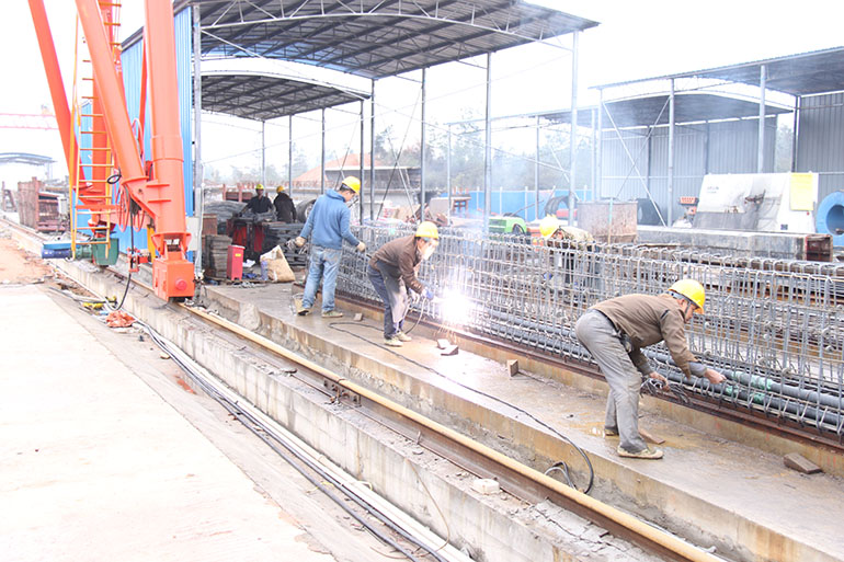 新年正月初六,氣溫驟降,陰雨綿綿,站在空曠的工地上,寒風呼嘯而過,感覺格外刺骨。走進11標項目部,頗顯冷清,值班的同事都在工地一線忙碌,只有公司副總經(jīng)理郭建文在等候我們,幾句寒暄之后,郭總帶領我們奔赴工區(qū)現(xiàn)場。郭總介紹,為了追趕進度,項目部安排混凝土攪拌站、兩個制梁場以及漣水河大橋連續(xù)開工,即使大年初一都沒有停工。